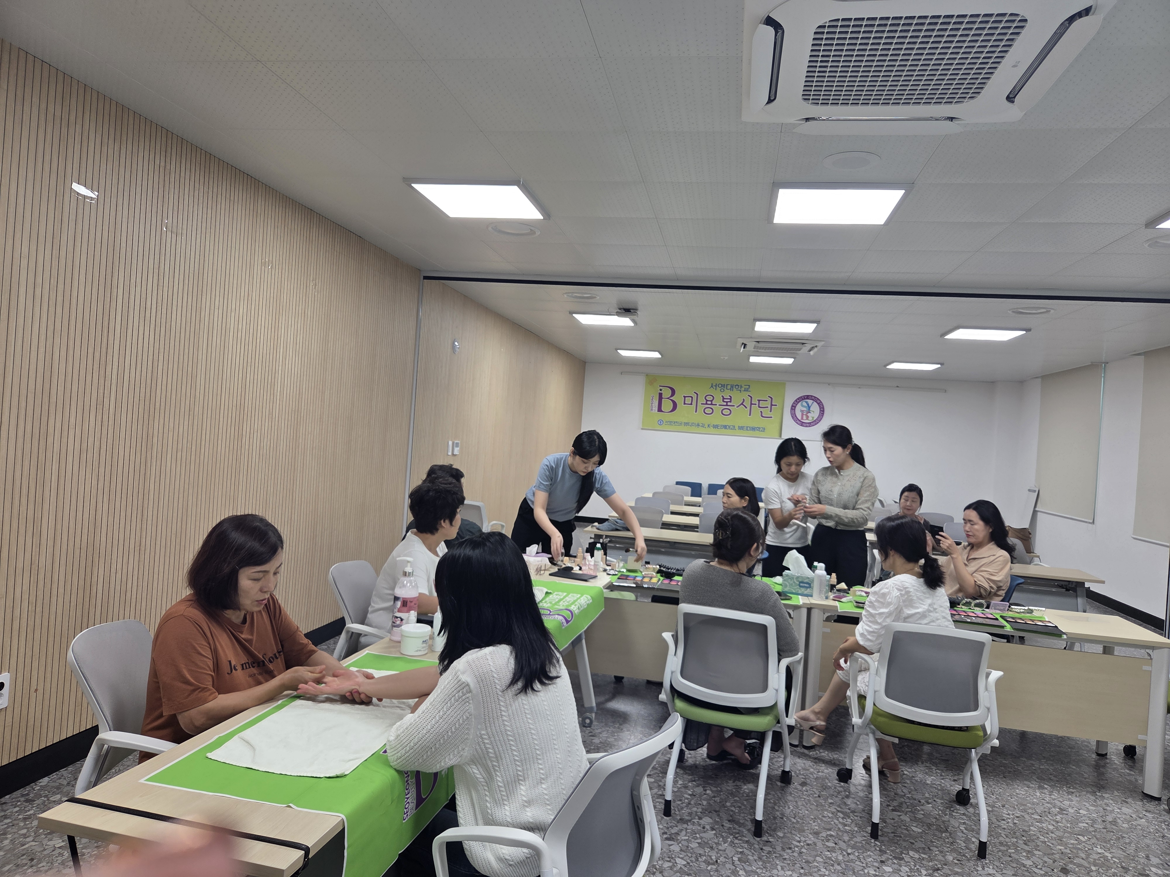 서영대학교 뷰티미용과는 북구청에서 운영하는 대학연계 주민참여 프로그램 지원사업에 참여하여 지역주민을 대상으로 손마사지와 메이크업으로 미용봉사가 진행이 되었다