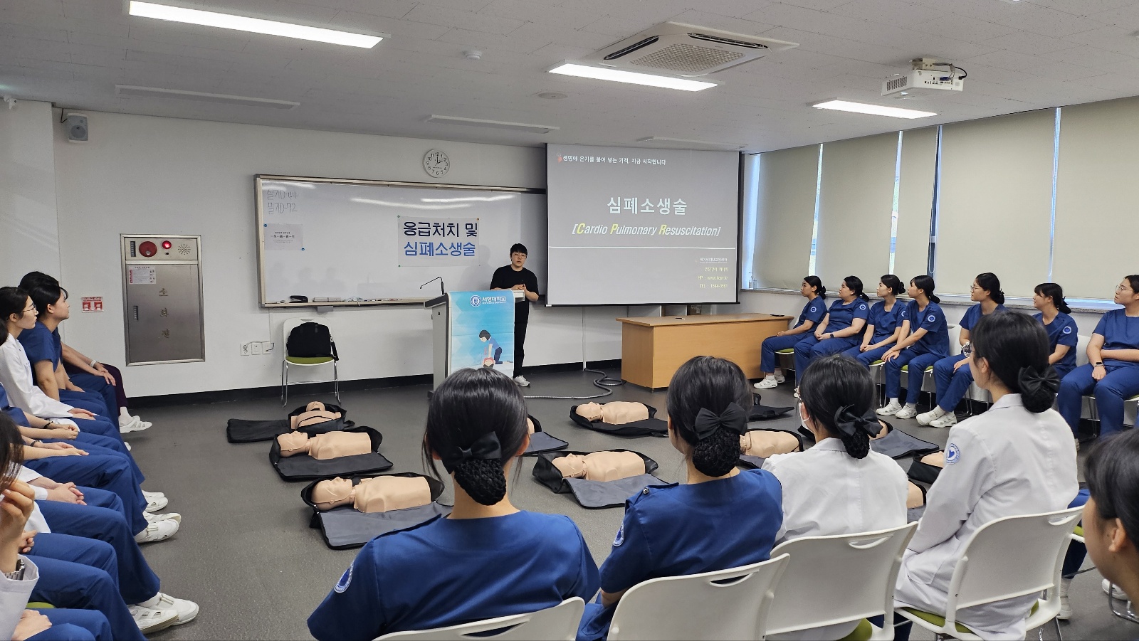 치과응급상황을 대비하여 3학년 학생들을 대상으로 심폐소생술 교육을 실시하였습니다.