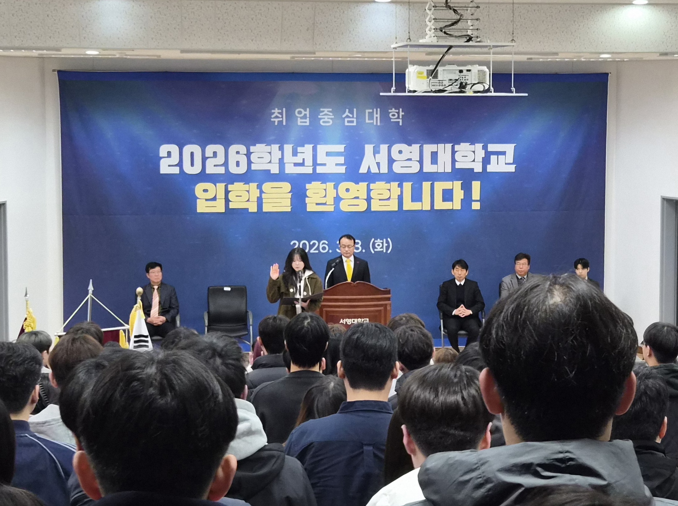 2026학년도 서영대학교 입학식에서 전문학사 치위생과 김*서 학생이 전체 수석 및 장학금을 수여받았습니다. 축하합니다^^