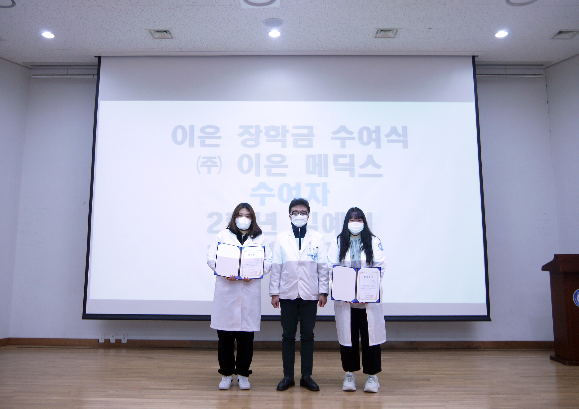 또한 우리학과에 장학금을 기탁한 (주)이은메딕스 조해준 대표를 대신하여 20학번 김예림, 21학번 윤정민 학생에게 "이은 장학회" 장학증서가 수여되었다.