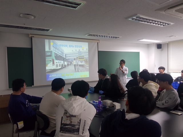 지난 10월 19일(토) 서영대학교 파주캠퍼스 임상병리과는 산학 협약을 맺은 고려대학교 분자진단연구회와 함께 서울시 도봉구 관내 6개 고등학교에서 130여명의 학생들이 참여한 가운데 도봉구와 함께하는 ‘생명과학체험교실’을 개최하였다. 청소년 ‘생명과학 체험 프로그램’은 일반 고등학교의 기자재로는 체험이 어려운 ‘DNA 지문분석 (DNA finger printing)’ 기법등과 같은 실험을 대학교 실험실에서 직접 체험해 볼 수 있도록 하는 기회를 통해 청소년 스스로의 자신의 적성을 찾아가고, 4차 산업혁명에 대응할 수 있도록 하기 위해 마련됐다. 특히, 서영대학교 파주캠퍼스 임상병리과 이지웅 학과장은 “바이오, 인공지능, 빅데이터, 의생명과학 등의 융합이 어우러지는 4차 산업혁명 시대를 맞이하면서 학생들이 직접 다양한 실험을 경험 할 수 있는 ‘청소년 생명과학 체험 프로그램’을 통해 과학기술을 선도할 수 있는 인재로 성장하는 기회가 되길 바란다며 그러한 인재들이 꿈을 키워 나갈수 있는 서영대학교 파주캠퍼스 입시 홍보 및 임상병리과의 비전에 대해 강의하였다.