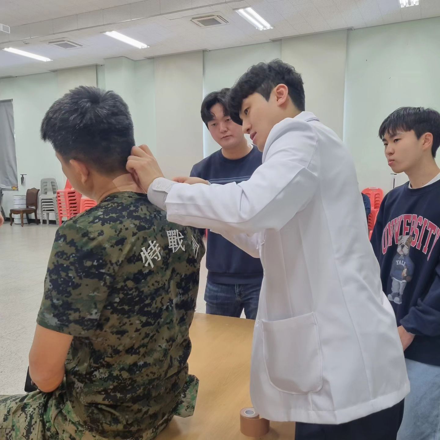 나라를 위해 헌신하고 계시는 특전사분들에게 근골격계 질환 부상예방을 위한 테이핑을 시행하였고, 각자 몸 상태에 맞는 맞춤 스트레칭 방법과 건강관리 방법 등을 교육하고 지원하였습니다.