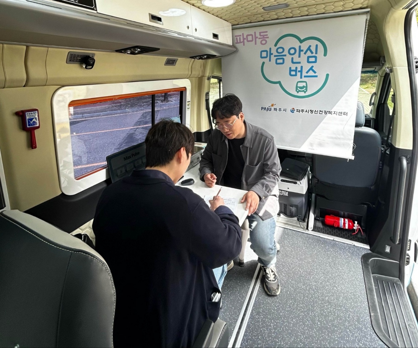 O. 2030 파주마음동행 마음안심버스는 정신건강 서비스가 필요한 청년을 대상으로 기동력 있는 버스를 활용해 직접 찾아가는 심리지원 서비스로, 청년들이 쉽게 정신건강 서비스를 받을 수 있고, 고위험군의 조기발굴을 통해 정신질환 만성화를 예방할 수 있도록 정신건강 서비스 연계를 지원하는 사업이다. 제공되는 서비스로는 ▲스트레스 측정, ▲우울, 불안 등 정신건강 자가검진, ▲정신건강 전문가 상담, ▲정신건강 정보제공 등이 있으며, 검사 결과 발굴된 고위험군은 센터로 연계해 정신건강의학과 전문의 ‘마음건강 주치의’ 상담, 치료비 지원 및 개별 사례관리 등 지속적으로 정신건강 서비스를 받을 수 있다.