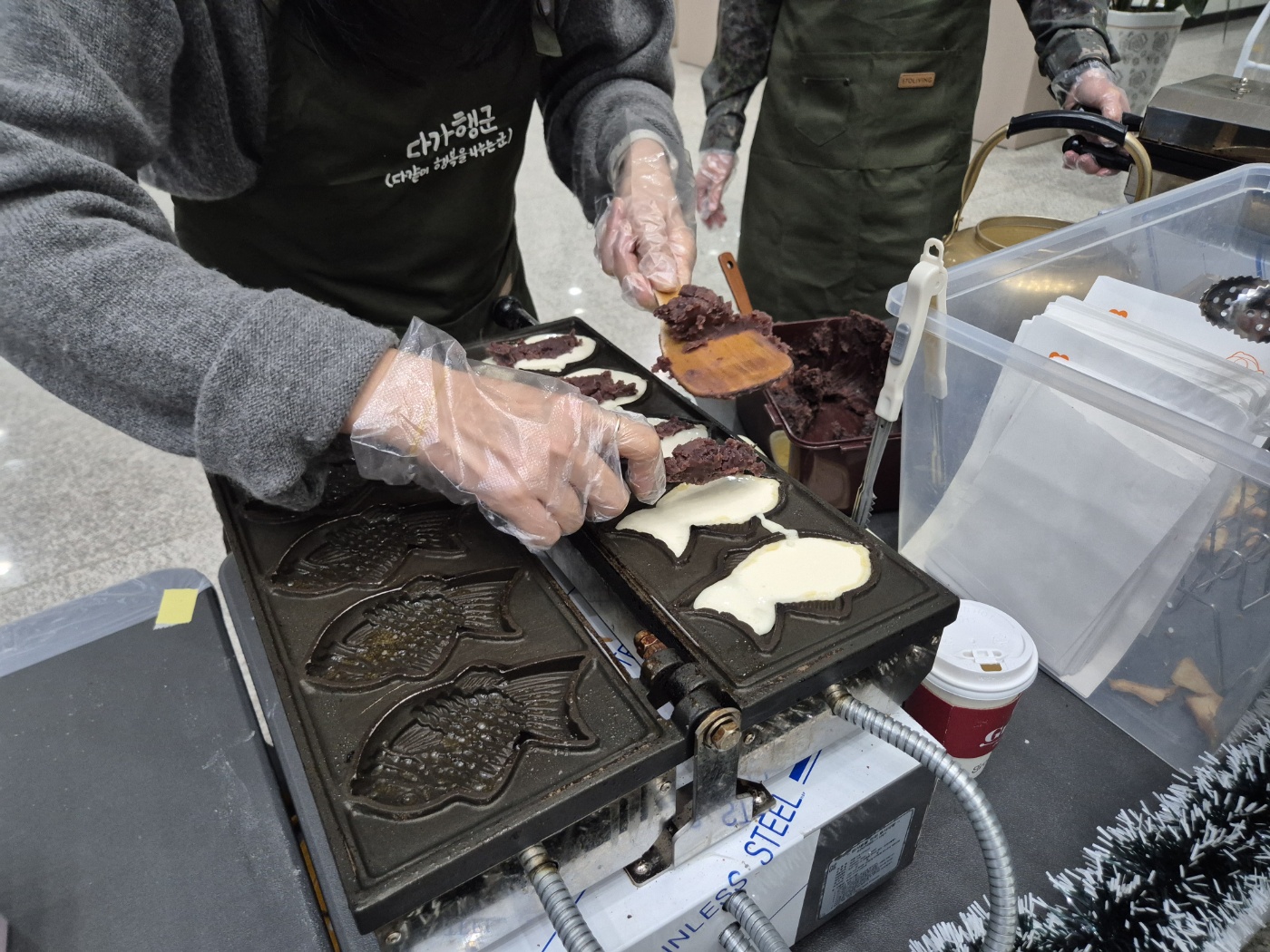 ○ 우리대학(총장 김정수)은 재학생들의 학업 응원을 위해 12월16일(화) 제2기갑여단 군 봉사동아리 '다가행군'과 함께 붕어빵 나눔행사를 진행하였다. 서영관 로비에서 진행된 붕어빵 나눔이벤트는 기말고사를 앞두고 학업에 매진하고 있는 재학생들에게 따뜻한 응원의 마음을 전하고자 마련된 행사이다. 제2기갑여단 군 봉사 동아리 '다가행군' 소속 간부들은 직접 붕어빵을 구워 학생 및 교직원에게 나누며 추운 날씨 속 온기를 전했다.